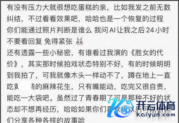 此次尝试里,还有一段对曩昔责任强度的吐槽,忙、压力大、饮食受控