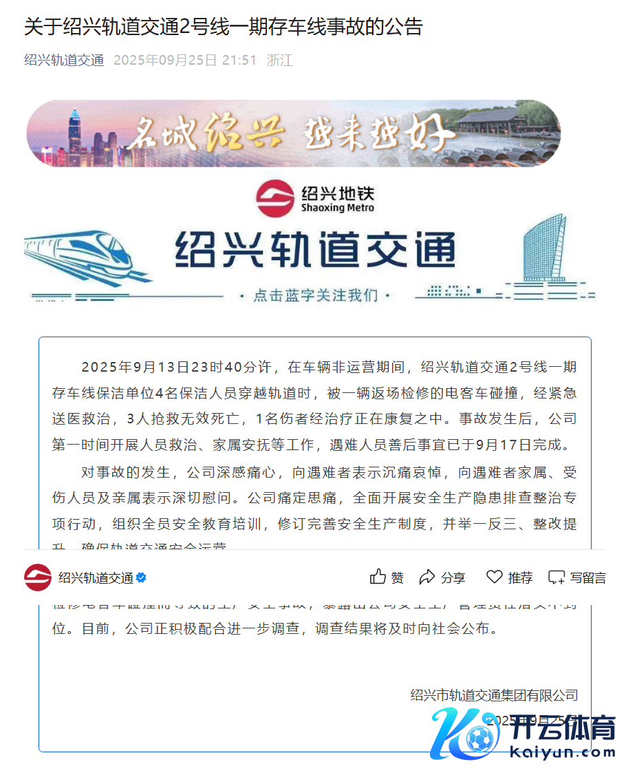 绍兴通报地铁半夜撞东说念主事件:3东说念主抢救无效死亡绍兴通报地铁半夜撞东说念主事件:3东说念主抢救无效死亡
