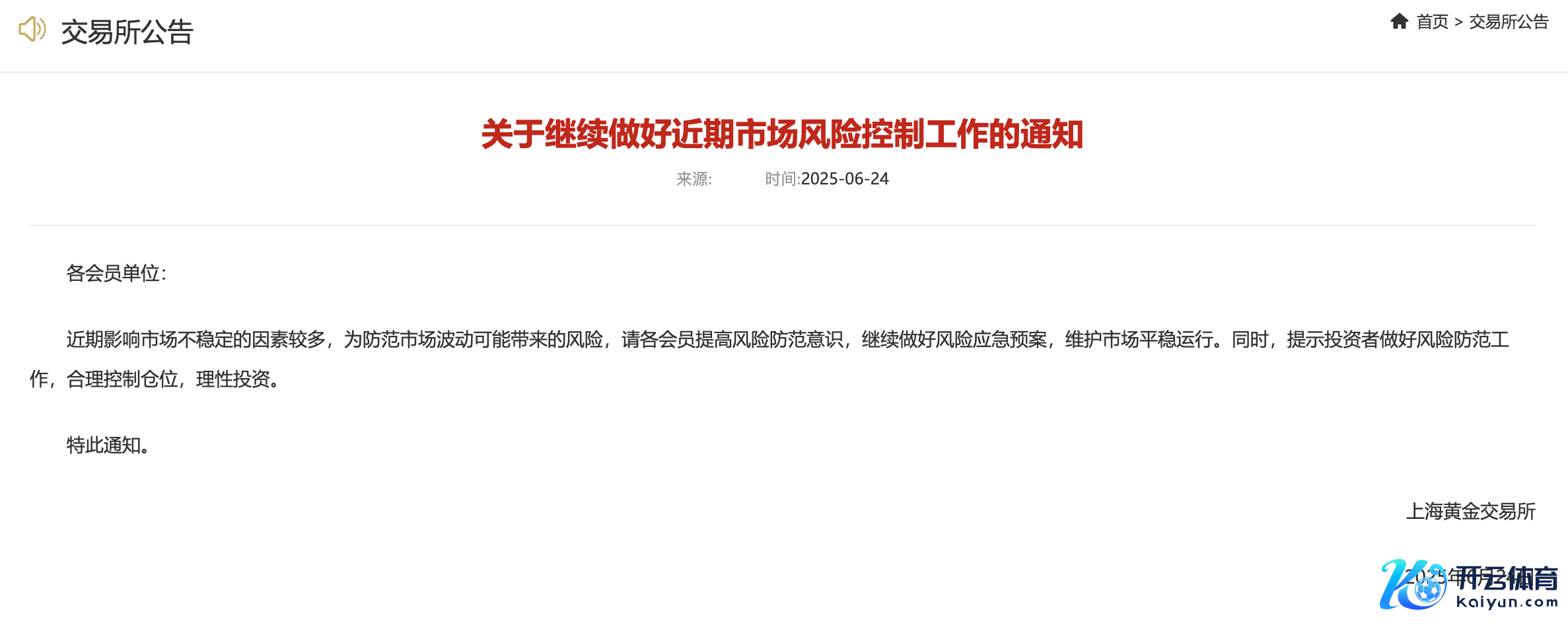 上金所发布对于不息作念好近期市集风险完了使命的见告上金所发布对于不息作念好近期市集风险完了使命的见告