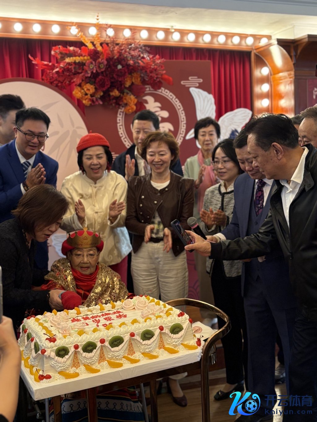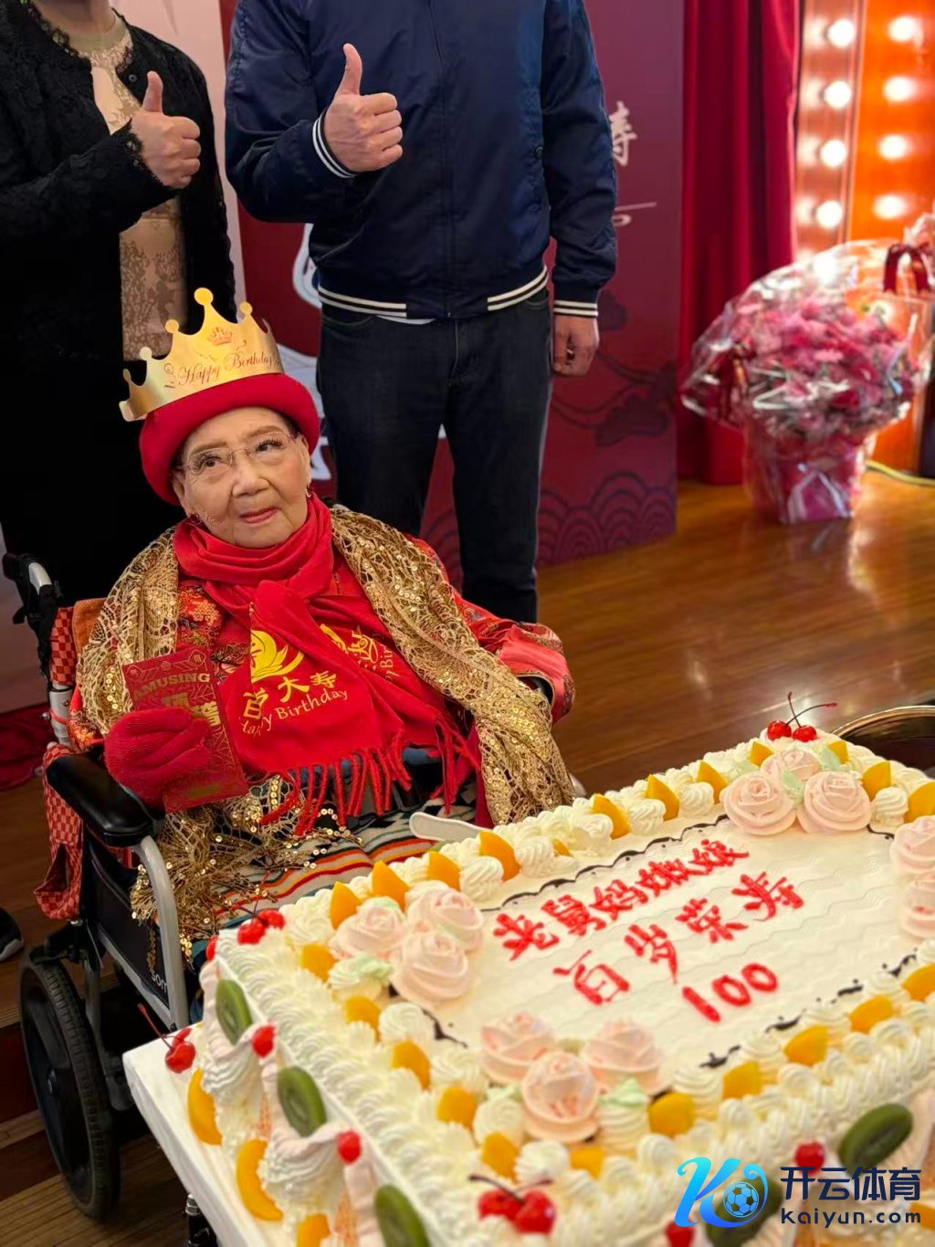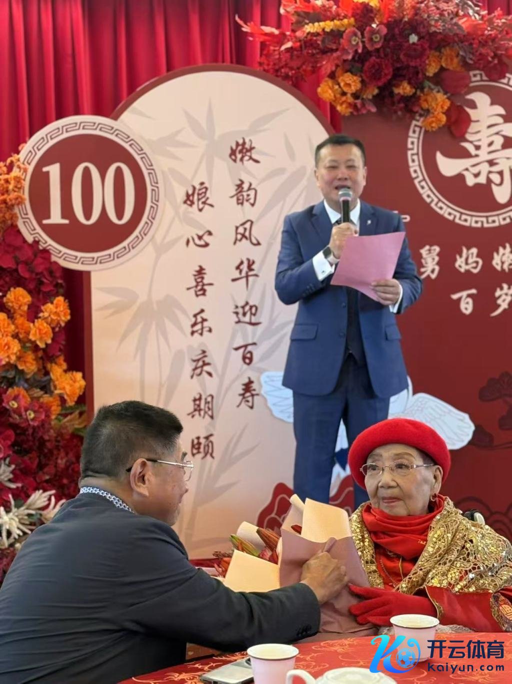 百岁乐龄的嫩娘孤单红色金色的喜庆装束登场,颜料红润精神果断,并且念念路明晰。在主抓东谈主让她说两句时,她声息清翠地复兴:“亲爱的不雅众一又友,今朝来贺喜,交关谢谢!”同期还大声演唱了两句滑稽戏。在人人唱起诞辰歌的蜂拥下,嫩娘亲手切诞辰寿糕,现场欢声笑语。